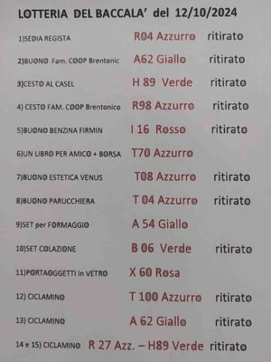 A conclusione dell'appuntamento Baccalà, comunichiamo i numeri vincenti della lotteria.