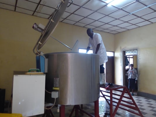 E con quindici giorni di duro lavoro, i nostri cinque volontari (Alessandro, Fabio, Gino, Maurizio, Ruggero), in collaborazione con gli artigiani locali, hanno piastrellato la parte nuova del caseificio ed hanno montato le attrezzature necessarie all'avvio della nuova vita del caseificio di Muyinga.
