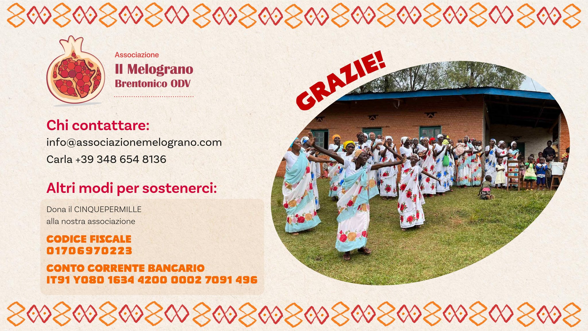 L'Incasso verrà devoluto all'associazione Il Melograno per sostenere gli orfanotrofi in Burundi e Zimbabwe.