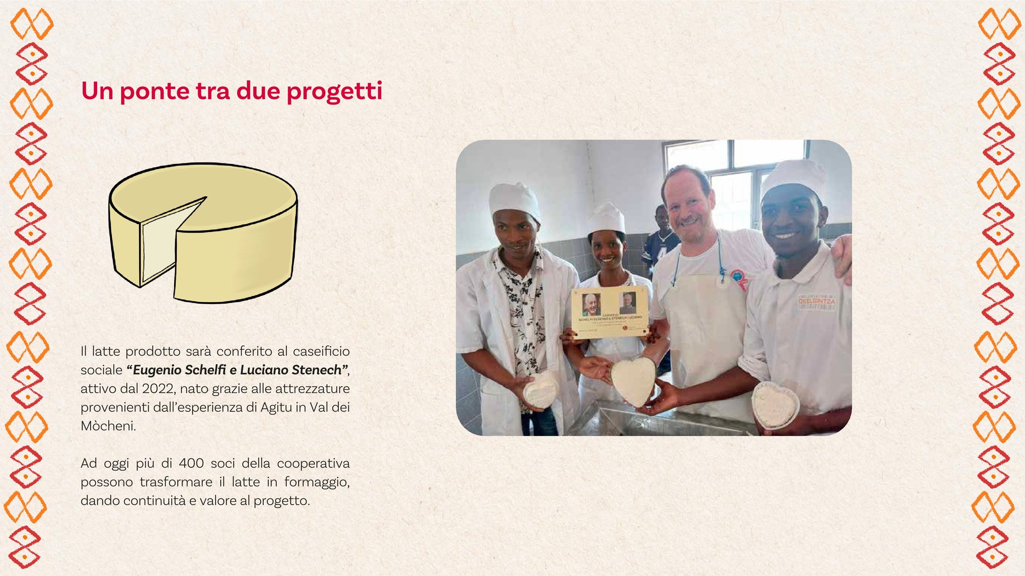 Caseificio: Impostare in maniera professionale l'attività, con il supporto di personale specializzato di Brentonico. Due casari hanno travasato la loro esperienza nel personale del rinnovato caseificio di Muyinga. I primi risultati sono ottimi, ora si tratta di proseguire l'attività conservando e migliorando il livello di partenza.